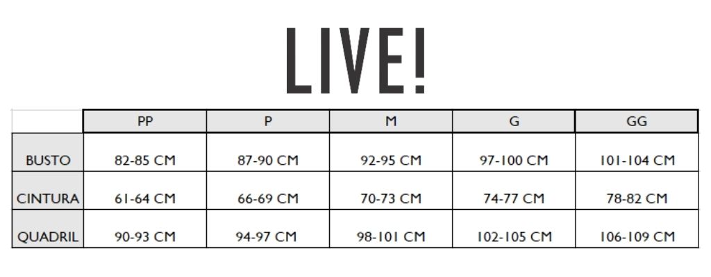 A exclusiva estampa LIVE! Icon, com leve brilho, adiciona autenticidade e sofisticação ao visual, elevando o design esportivo a um novo nível. Além disso, o tecido possui média compressão, zero transparência e tecnologia Easy Care, facilitando os cuidados no dia a dia. O processo de tingimento com redução no consumo de água reforça o compromisso com a sustentabilidade.